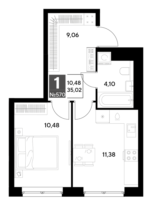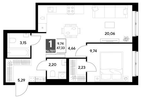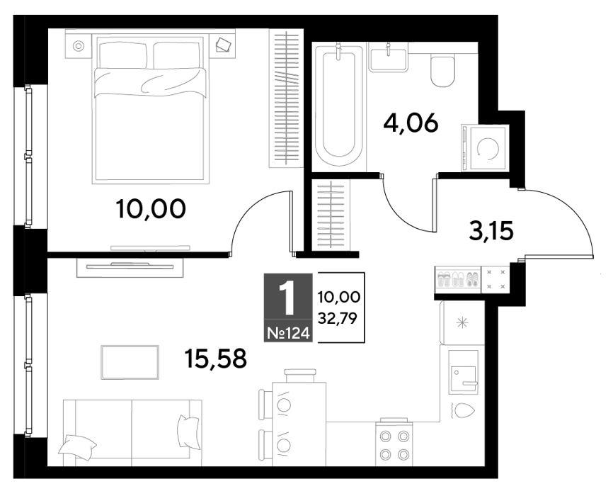 Площадь от 32.79 м2