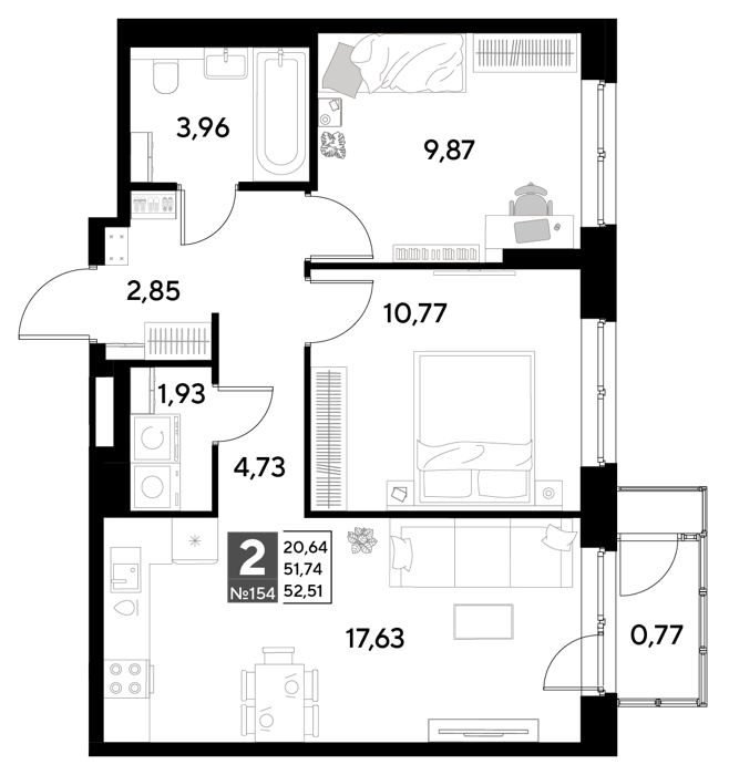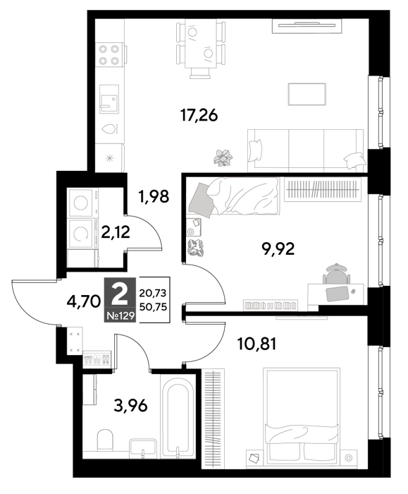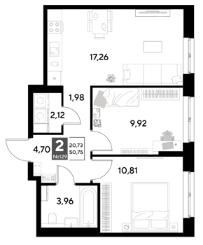 Площадь от 50.75 м2