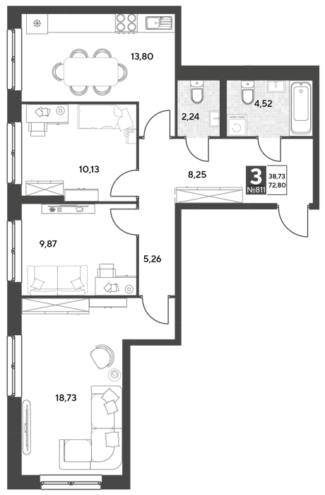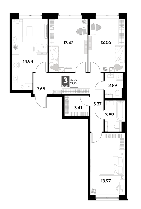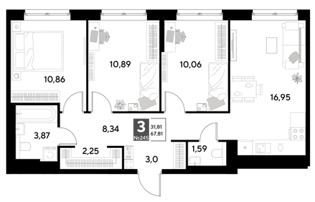 Площадь от 67.81 м2