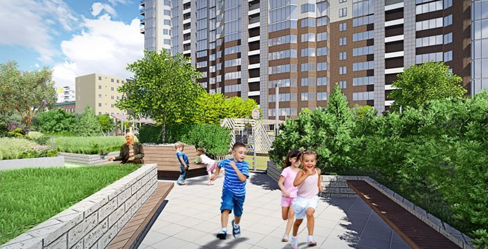 «Космопарк» — это сочетание городской динамики и природного уюта. Во внутренних дворах созданы зеленые зоны с посадкой деревьев, вечнозеленых кустарников и аккуратных газонов. Для комфортных пространств обеспечивают пешеходный бульвар с аллеями и скамейками, зону отдыха оснастят теневыми навесами, лежаками и местами для неформального общения. Детские игровые площадки порадуют безопасными модулями, любители активного образа жизни могут заниматься в воркаутской зоне с тренажерами и баскетбольной площадкой.