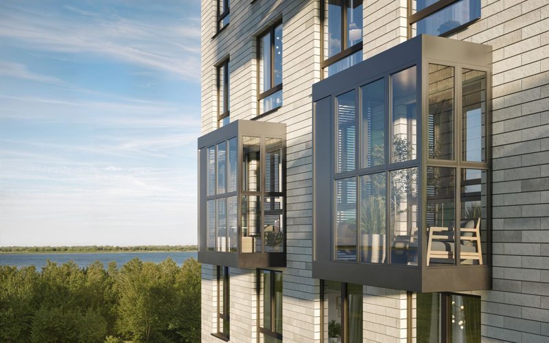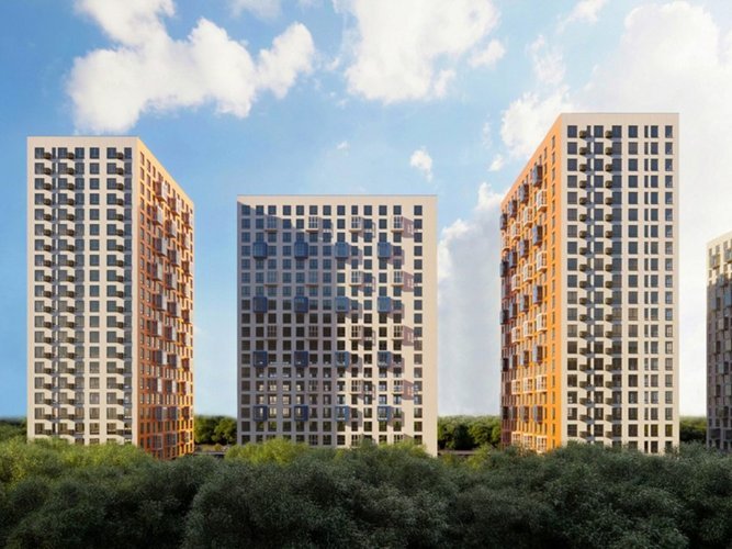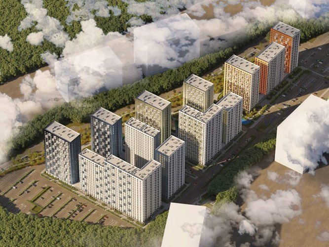 Проект включает в себя 12 разноэтажных домов высотой от 20 до 25 этажей. Архитектурные решения с фасадами в сочных синих и оранжевых оттенках подчеркивают индивидуальность комплекса. Остекленные лоджии обесцвечивают панорамные виды для сохранения и ухоженной внутренней стены с продуманным благоустройством.