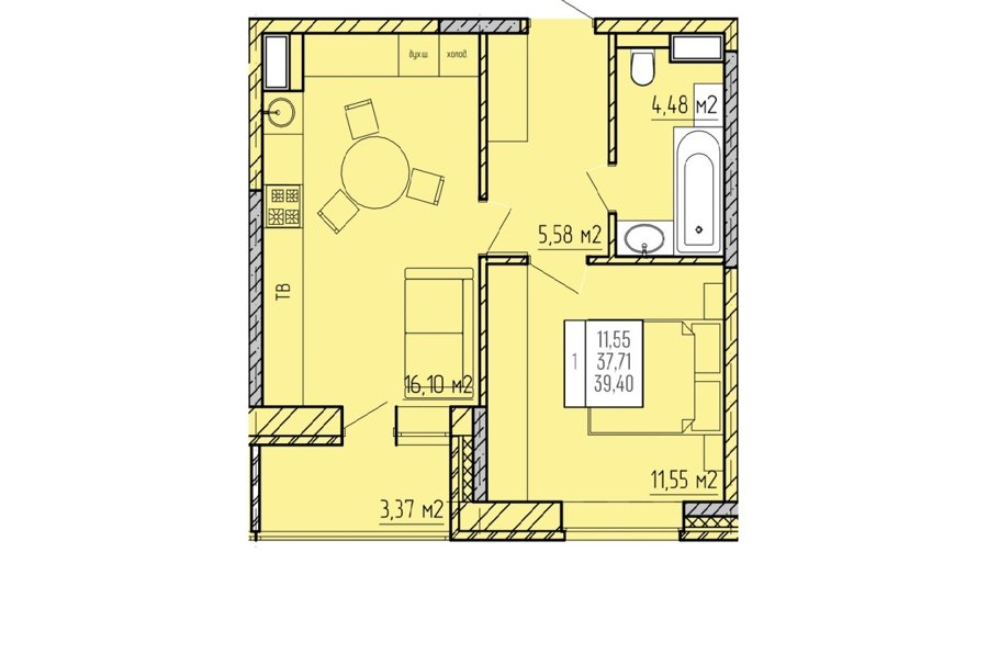 Площадь от 39.6 м2