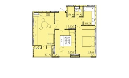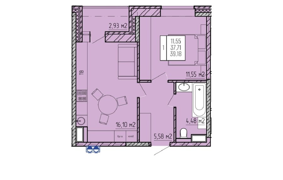 Площадь от 55.5 м2